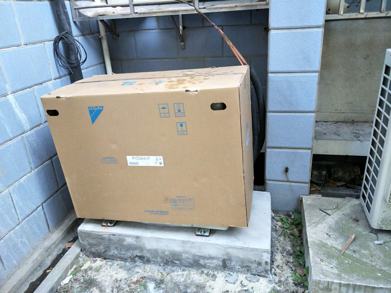 做到外機風扇出風口必須在50公分內外機后部15公分之內無遮擋物,所有落地腳必須安裝減震塊,保證外機運轉正常。