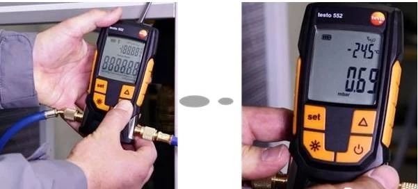 氮氣是惰性氣體,膨脹系數小,幾乎不存在由于熱脹冷縮而產生的壓力變化。如果測試過程中壓力表有下降,則應該檢查冷媒管焊接是否有問題。為了保證安裝施工到位,所有壓力表在常規(guī)24小時保壓后不做拆除,保證冷媒系統(tǒng)的安全運行。
