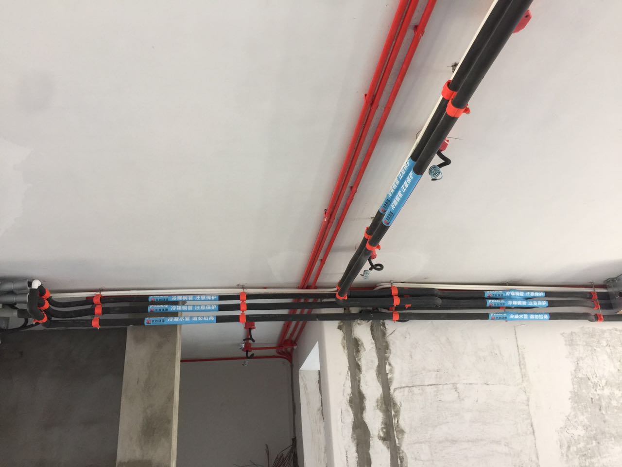 提前跟電工交接待空調(diào)的型號功率,同時安裝好后要跟中央空調(diào)的安裝師傅確認電源線預留的位置、電線方數(shù)的要求,并交待給電工師傅。