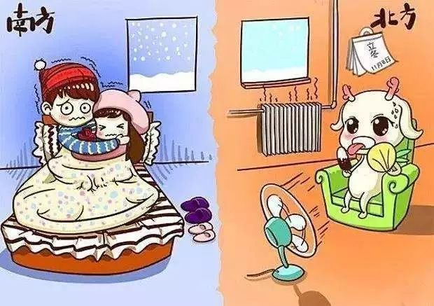 相比之下,在南方,室外溫度一般都會在零攝氏度以上,但南方的冬天都會伴隨著連續(xù)好幾天的陰雨天氣,空氣非常潮濕。室內(nèi)又沒有家庭暖氣,給人一種極其陰冷的感覺。在房間里呆久了甚至會覺得室內(nèi)比室外更冷。