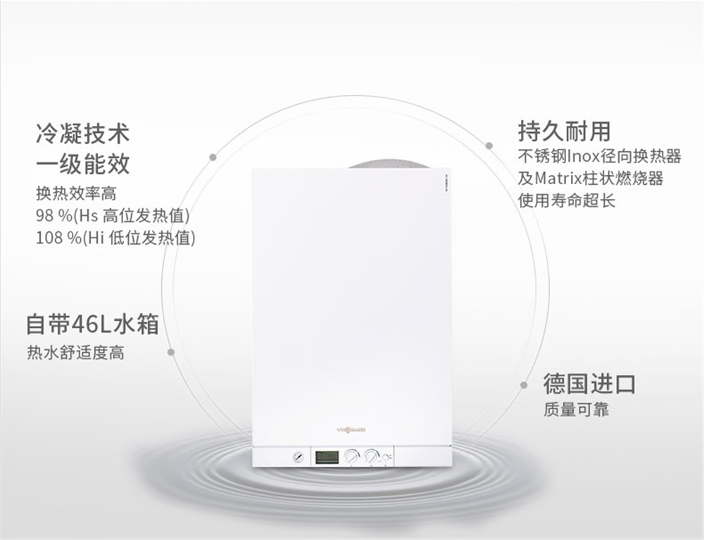 水箱內(nèi)置式冷凝燃?xì)獠膳療崴疇t–德國品質(zhì),經(jīng)濟(jì)且高效環(huán)保、原裝進(jìn)口,中國能效標(biāo)識一級。